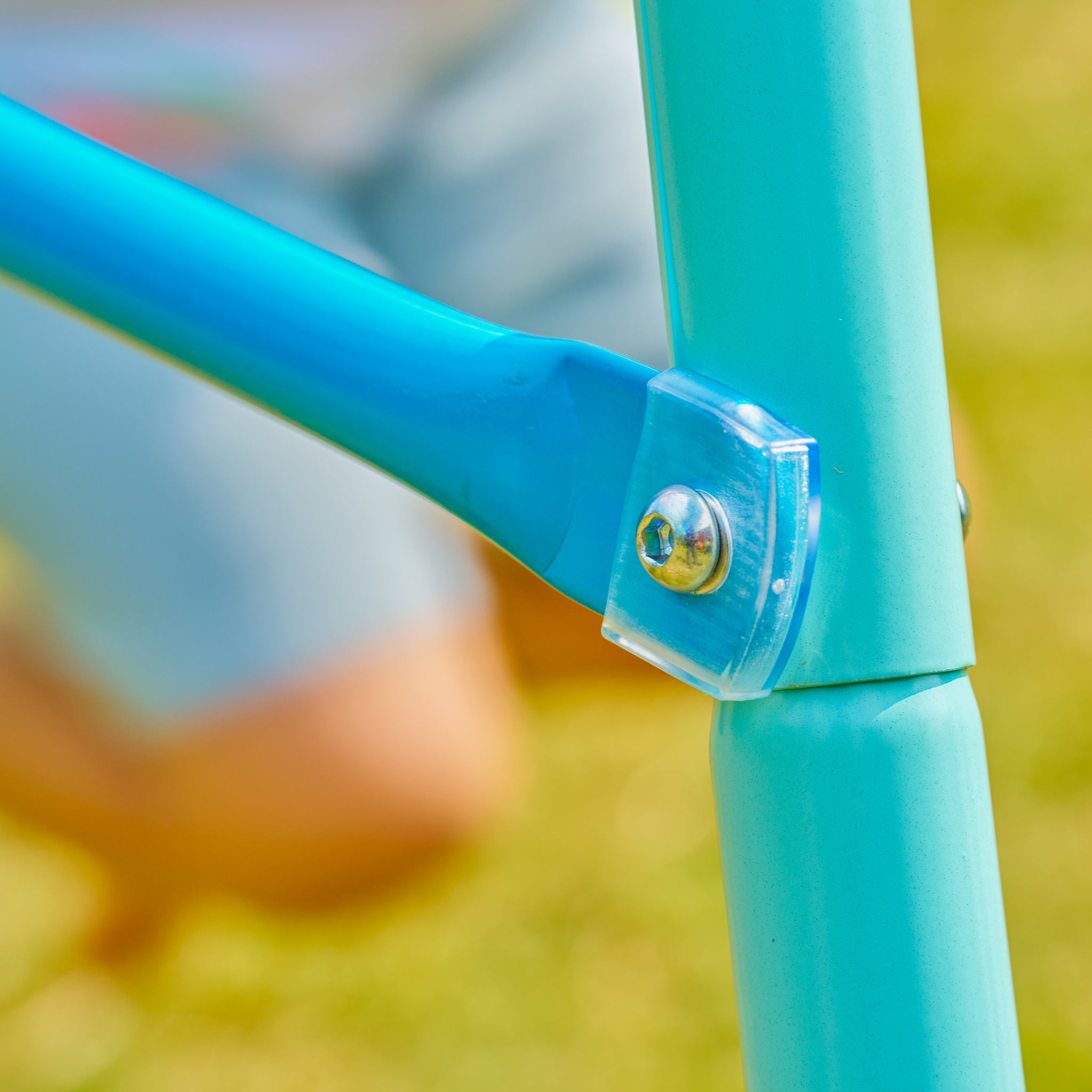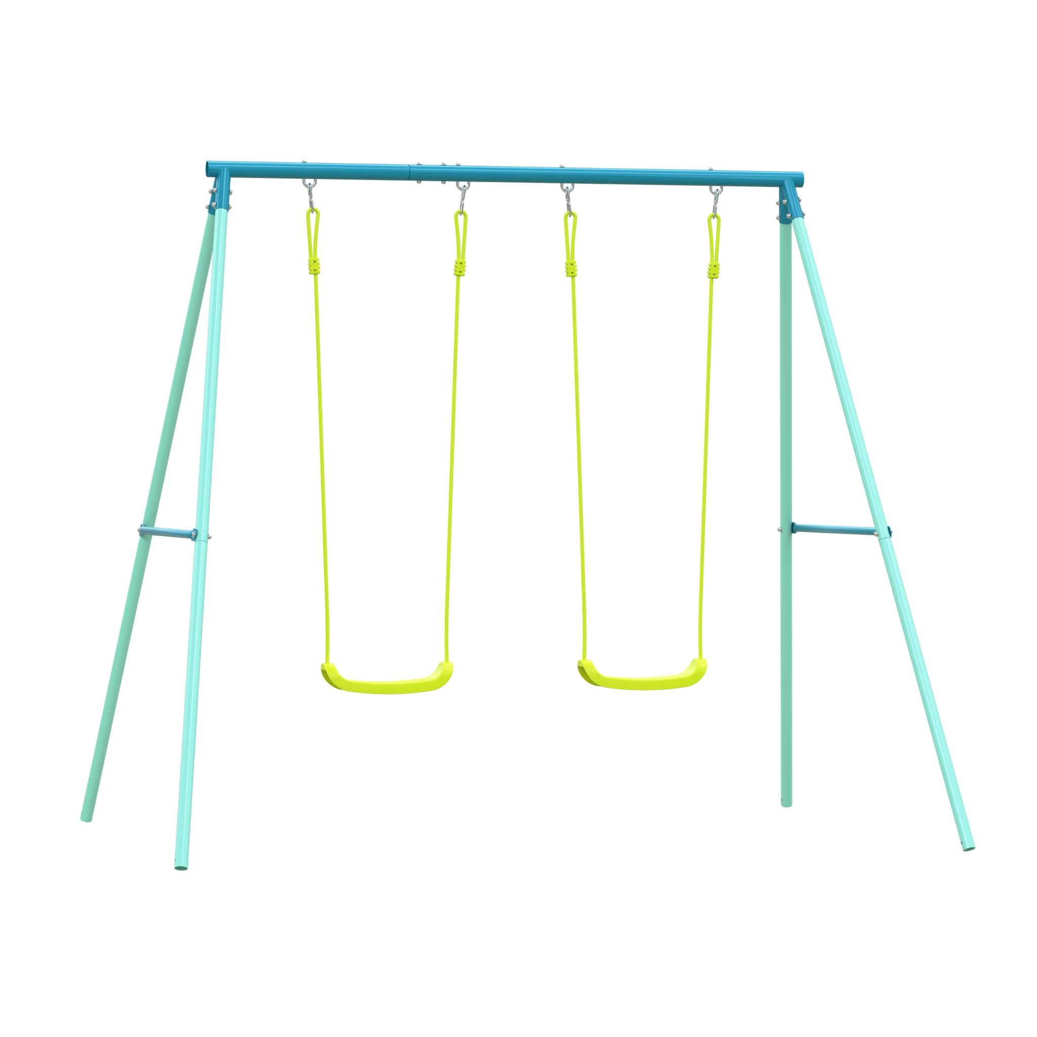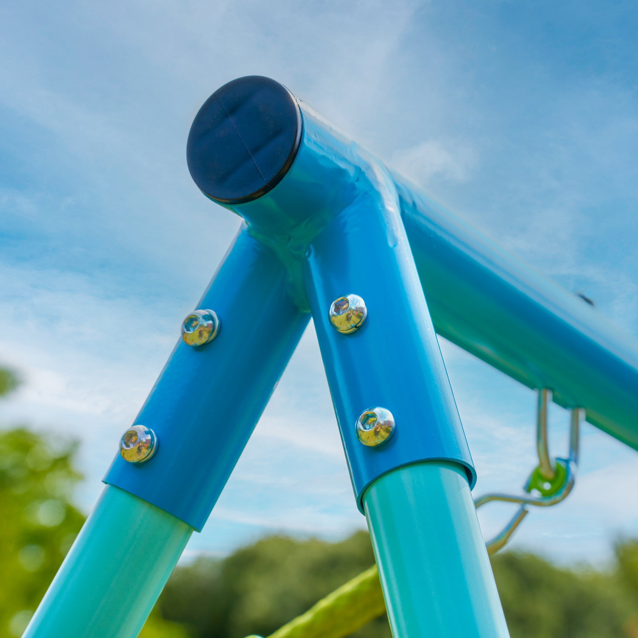 A robust, Single Swing Set in attractive blue and lime colourway. All in one box and easy to assemble.